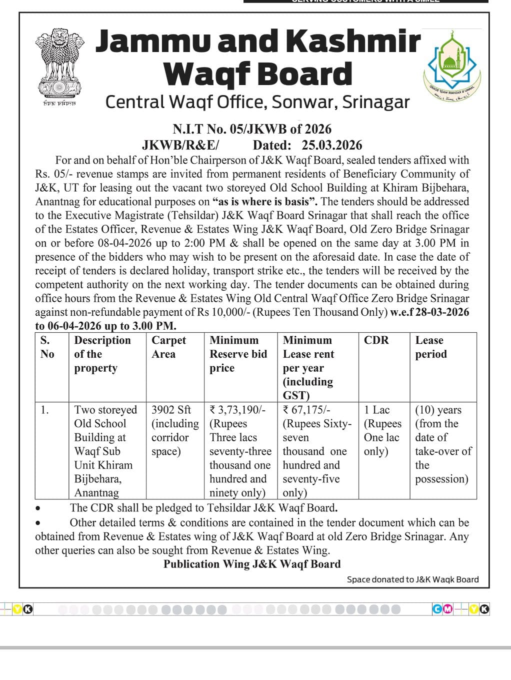21 06-03-2026 Notice for Lease (NIT No 03 /JKWB of 2026)