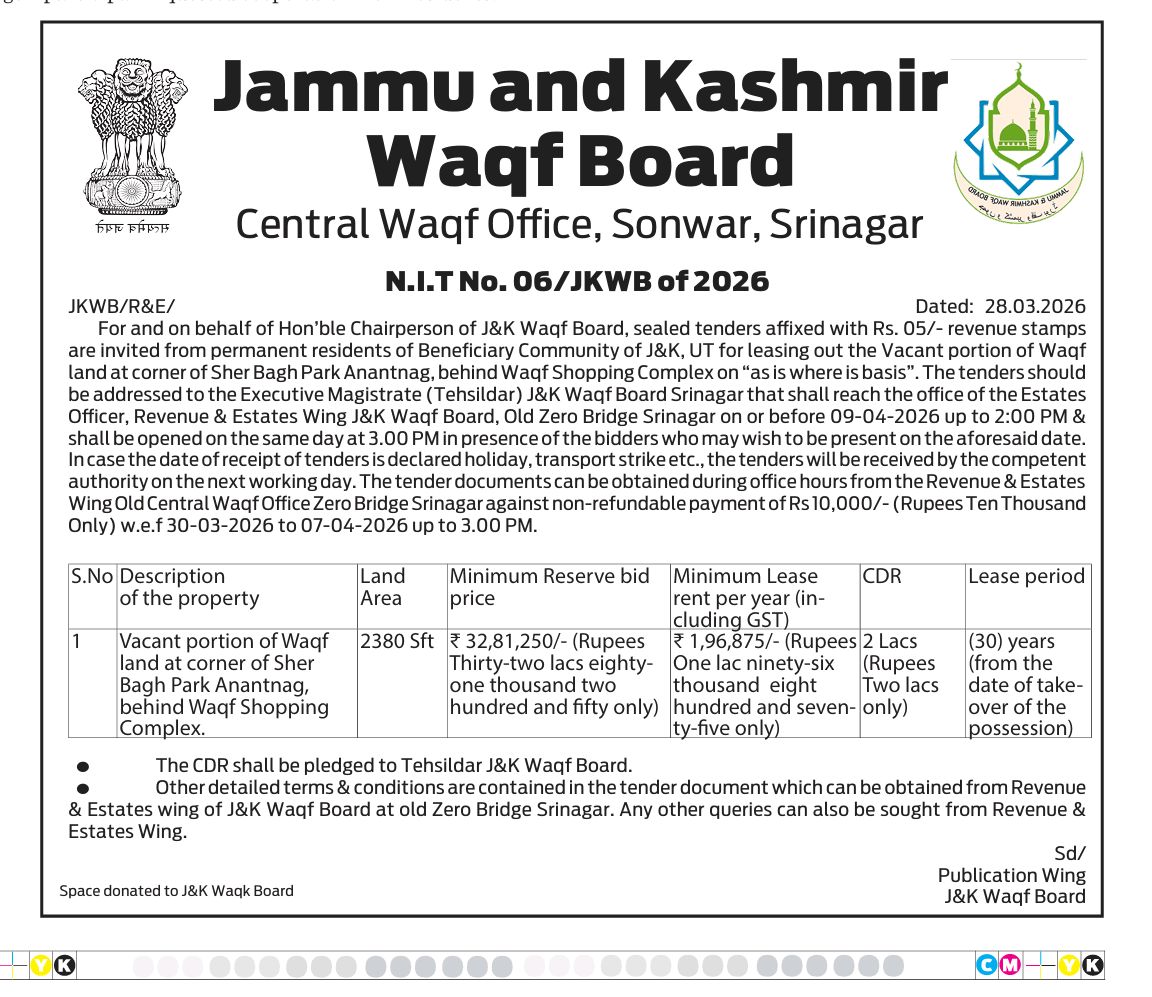 NIT No 06/JKWB of 2026