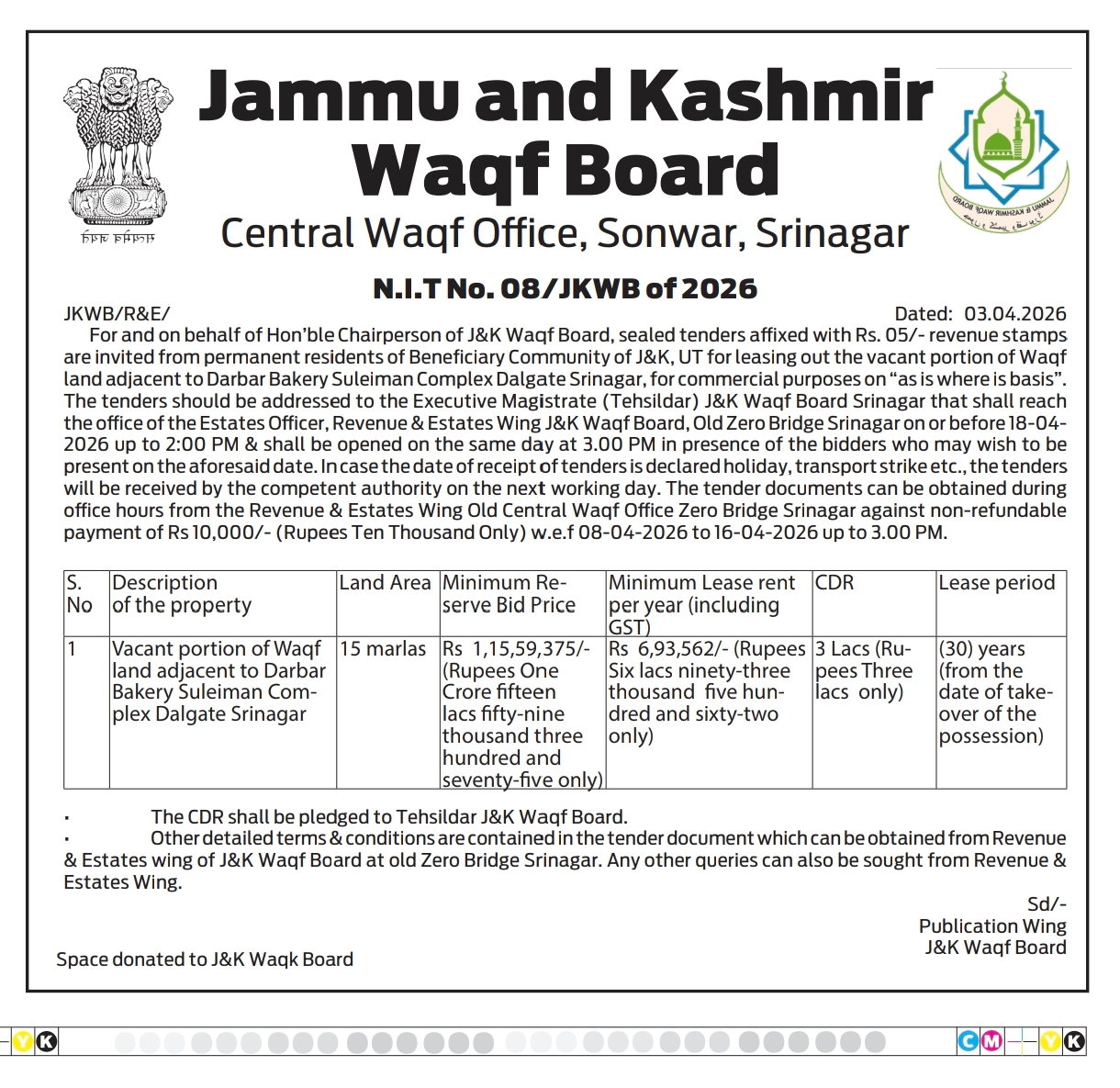 22 06-03-2026 Notice for Auction of Waqf Orchard - 2026